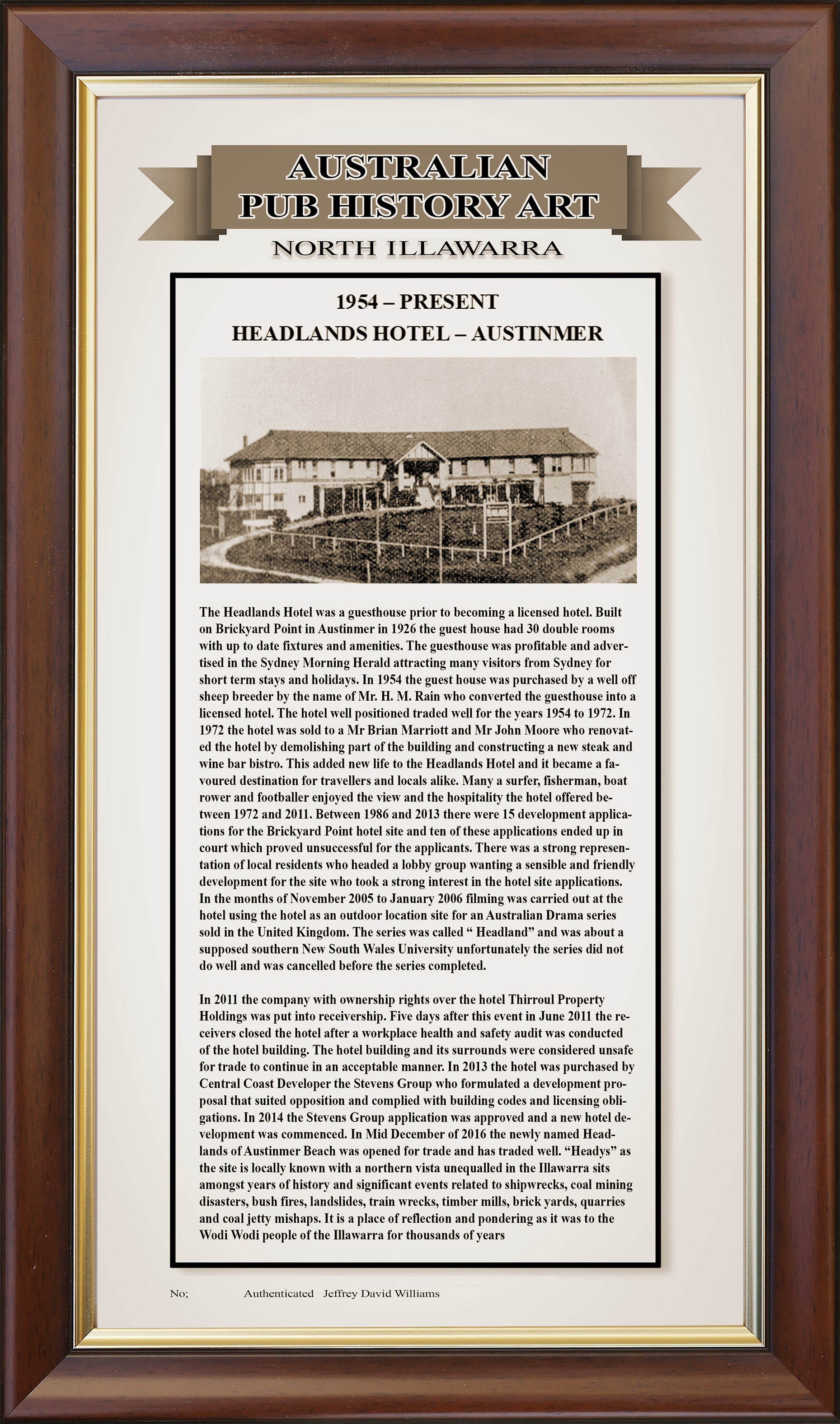 In 1954, Illawarras history was changed and enhanced with a new hotel with a truly magnificent view of the coastline. The print is in limited numbers with only 51 copies available for purchase. This collectible, limited-edition artwork captures the beauty of a distinct era. Each print is meticulously crafted and hand-signed, complete with a custom frame measuring 29x51 inches.