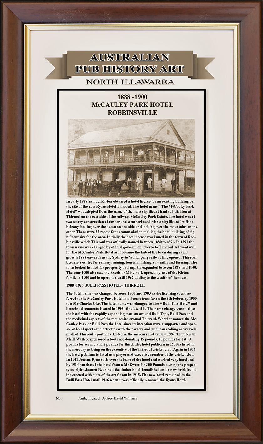 The beginning of the Ryan's Hotel at one time one of Australia's most favoured license hotels. The print is in limited numbers with only 51 copies available for purchase. This high-quality piece of artwork is produced in a limited edition of 51 prints, making it a rare and timeless piece for your home or office. Artfully crafted with a frame size of 29 x 51 inches.