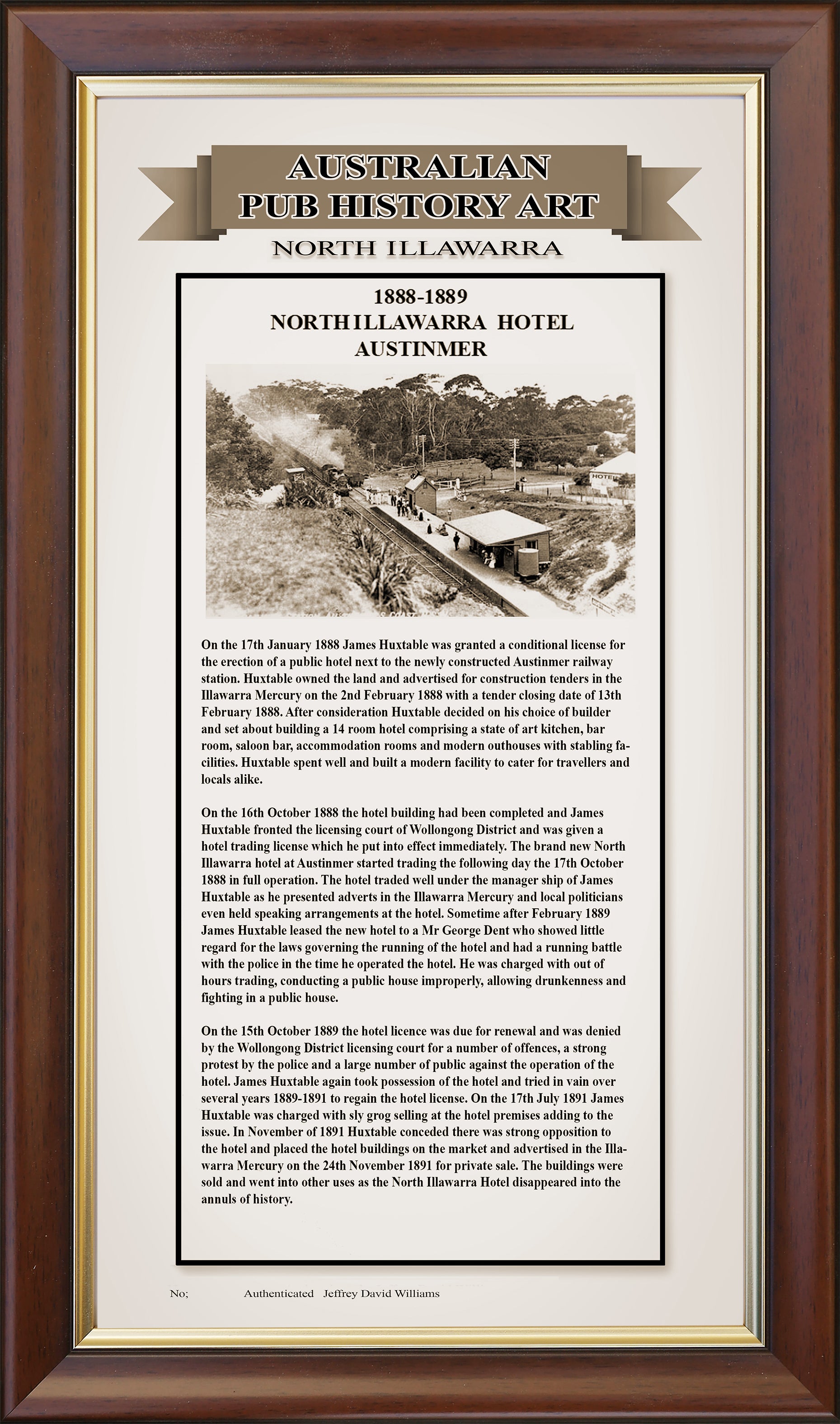 A must have for history buffs. An almost unknown entity of the North Illawarra. The print is in limited numbers with only 51 copies available for purchase. This limited-edition print is an exclusive representation of North Illawarra's history, with only 51 copies left in the world. Featuring a stunning 29 x 51 frame size, it makes a great addition to any history enthusiast's collection.
