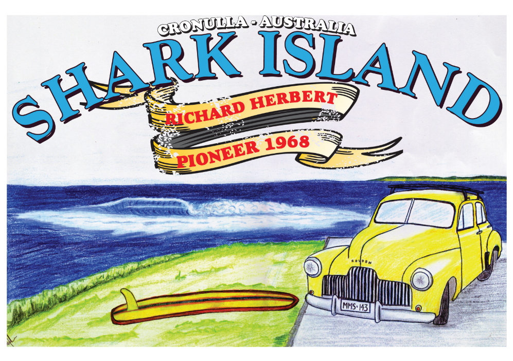 Shark Island features vibrant, high-quality artwork depicting a tropical surf scene, perfect for any surf store. Get an extra dose of beach vibes with Shark Island.