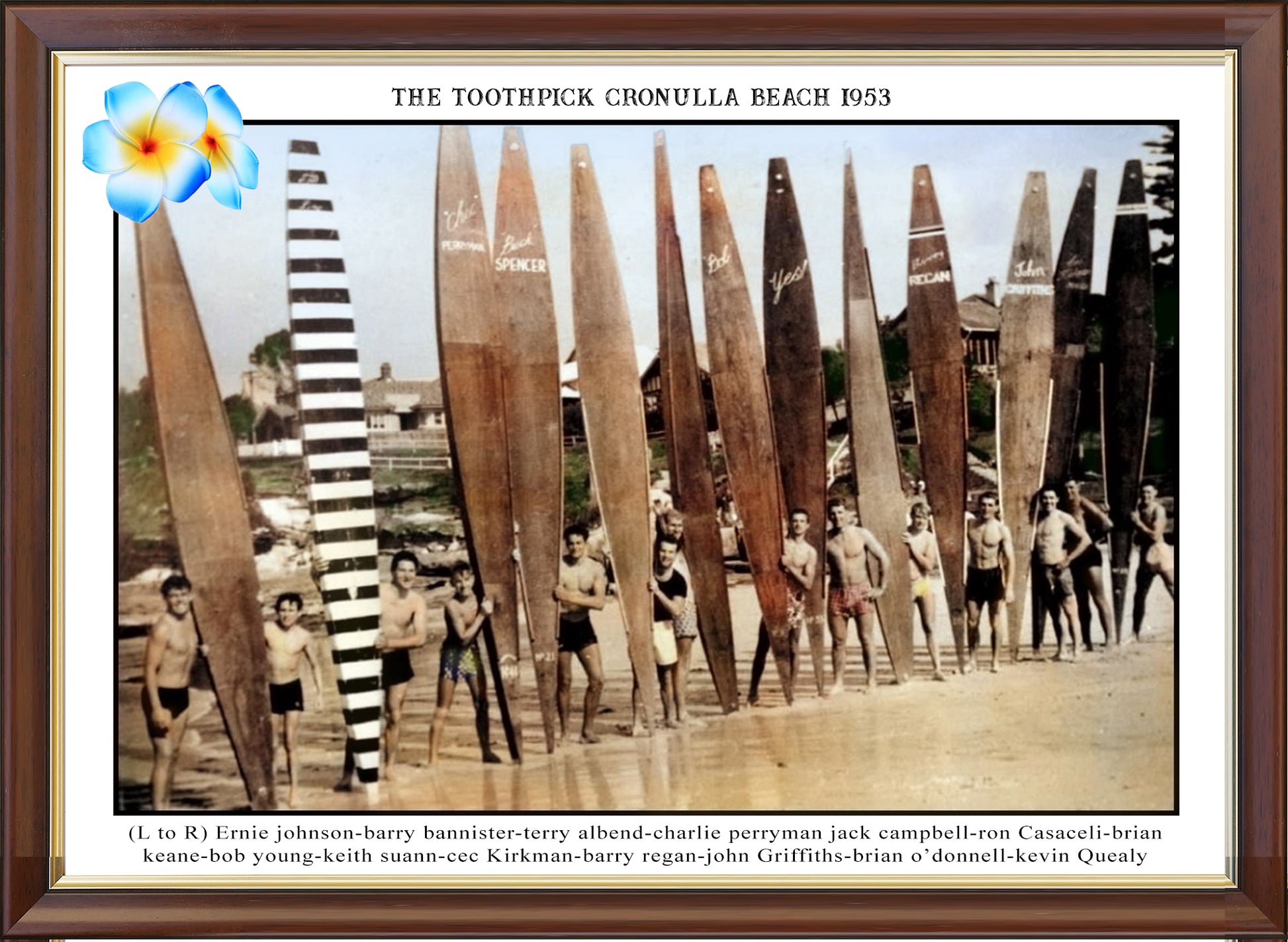 Legend has stories of the toothpicks being surfed at exotic and remote locations around Cronulla which surfaced at the 100 year surfing celebration in Cronulla in 2015. Australia History Art hopes that the period of surfing that the toothpicks print represents is displayed in a respectful process that the toothpicks deserve. This print is an extremely unique gift for friends, family or collectors.